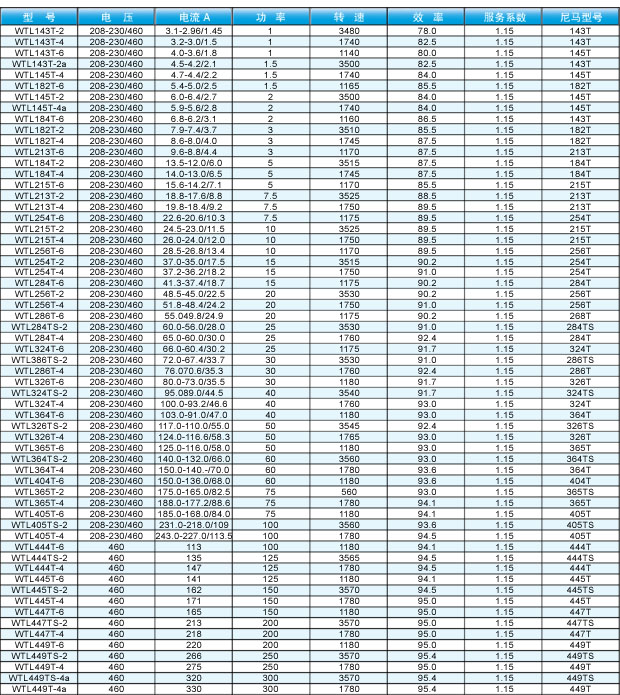 該系列電機(jī)為全封閉自扇冷式三相異步電動(dòng)機(jī),符合美國電氣制造商協(xié)會(huì)Nema的相關(guān)標(biāo)準(zhǔn),電機(jī)采用F級絕緣,尼馬B設(shè)計(jì)或C設(shè)計(jì),功率范圍從1馬力到300馬力,涵蓋2、4、6、8極,產(chǎn)品已獲得美國及加拿大政府的相關(guān)能效認(rèn)證,證書號(hào)CC0082A及EEV2234888,亦獲得UL及CSA安全認(rèn)證。