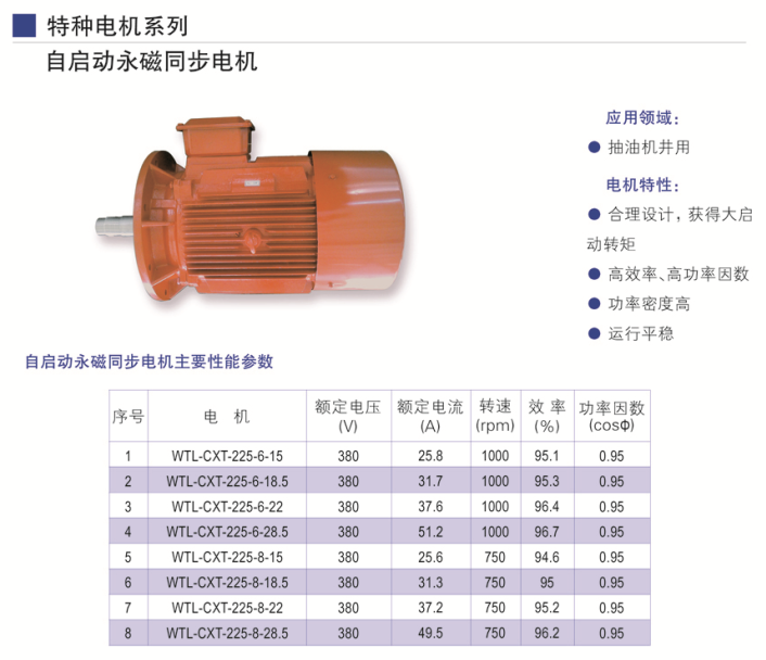 抽油機、空氣壓縮機、紡織機械用。高效率,高功率因數,調速范圍廣,過載能力強,速度精確,定位準確,運行平穩。